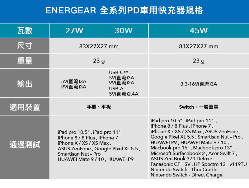 .支援手機、平板、電子錶快充