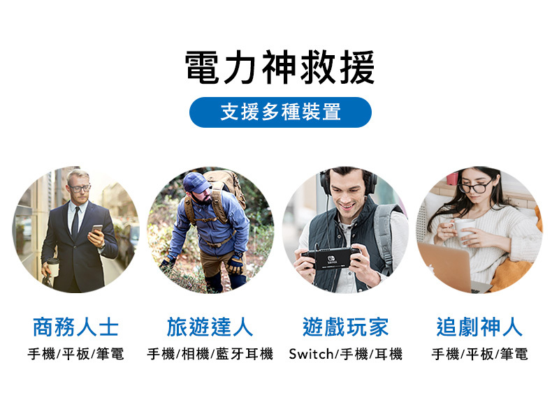 筆電:(你的急救備用電源,讓你只需充電20分鐘,電量即從0%直達15%~35%(視筆電型號而定),滿足你迫切用電的需求)