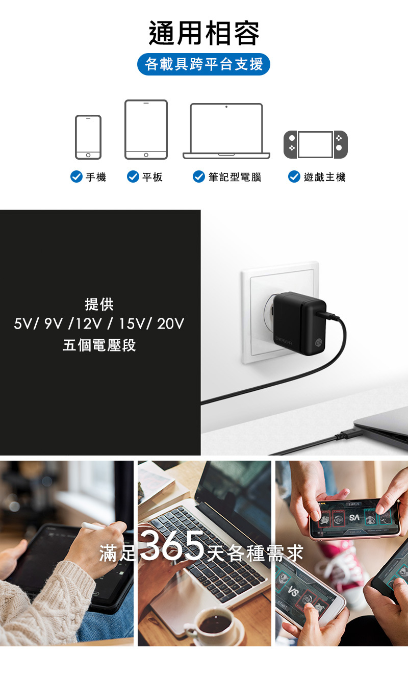 .支援筆電、Switch/Switch TV Mode、手機、平板、電子錶快充