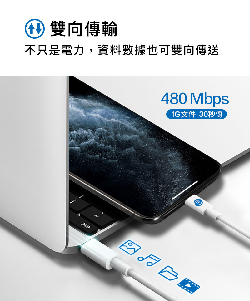 .480Mbps高速雙向傳輸:資料傳輸與充電 輕鬆同步