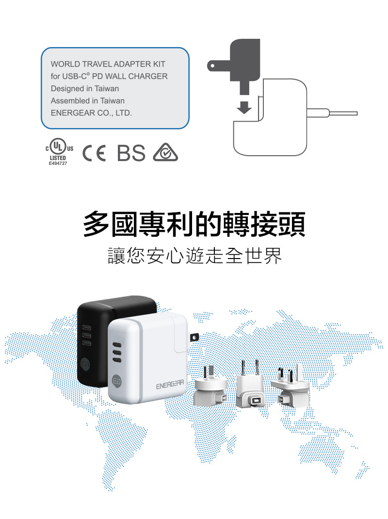 即日起~購買任一款快充器,即贈多國轉接頭一組!